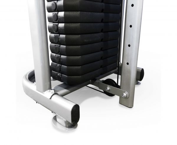 - Со встроенным весом – в них используются плоские грузы, закрепленные с помощью фиксаторов на тросах. Благодаря движению утяжелителей "вверх-вниз" отлично прорабатываются мышцы. Единственный недостаток – целенаправленная работа только с одной группой мышц.