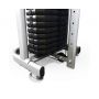 - Нагружаемые дисками – дополнительным весом в таких тренажерах выступают обычные блины, вес которых подбирается в зависимости от силовых потребностей спортсмена. В процессе выбора важно обращать внимание на качество рамы, способ фиксации дисков и грузоподъемность.