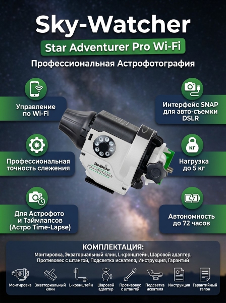 Монтировка Sky-Watcher Star Adventurer Pro Wi-Fi, бело-зеленая - Описание
