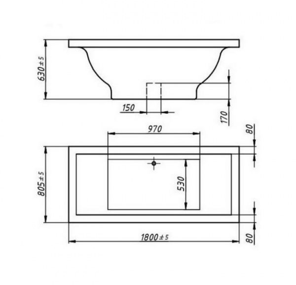 Ванна отдельностоящая Castone Амелия 1800х800 с переливом