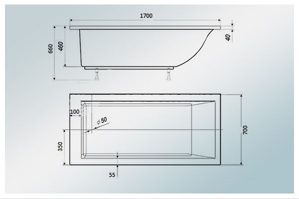Прямоугольная ванна с наклоном Castone Надежда - Характеристики