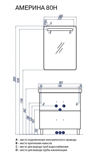 Набор мебели Акватон Америна 80 Н, темно-коричневый - Описание