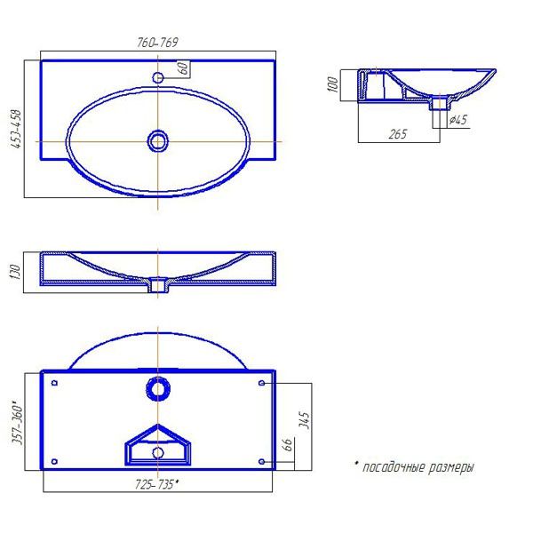 | Ширина раковины: | 76 см |