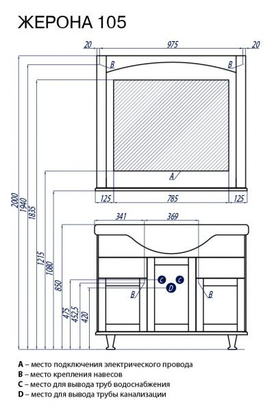 Набор мебели Акватон Жерона 105, черное серебро с патиной - Характеристики