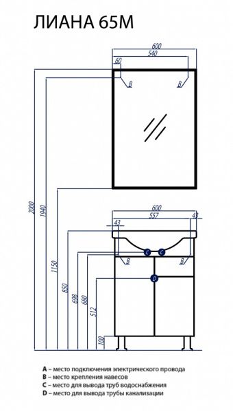 Набор мебели Акватон Лиана 65 М - Характеристики