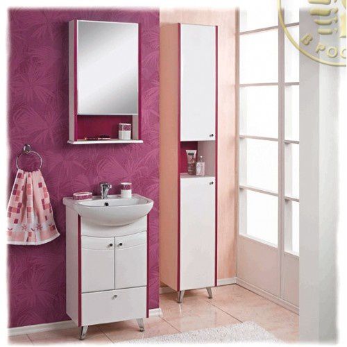 В набор входит зеркало и тумба с раковиной, в которой есть все необходимое для хранения ванных принадлежностей. Если позволяет свободное место в помещении, то можно дополнительно установить шкаф-колонну. Мебель прослужит долго и будет радовать стильным дизайном.