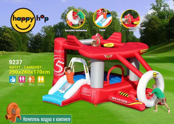 Надувной батут с горкой Happy Hop 9237 «Аэроплан» - Доставка