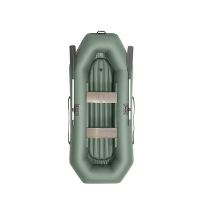 Лодка из ткани ПВХ плотностью 750 г.м. с мех объёмом 5 л, сумкой, сиденье на 2 места, 2 алюминиевыми веслами.