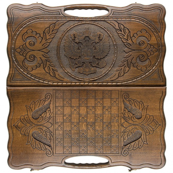 Нарды резные с ручкой Haleyan kh047-6 «Герб РФ 2» - Описание