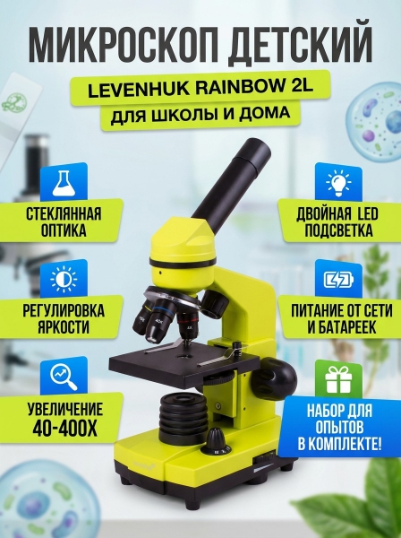 Купить оптический микроскоп Levenhuk Rainbow 2L Lime/Лайм по эксклюзивной цене от официального дилера. Профессиональные консультации.