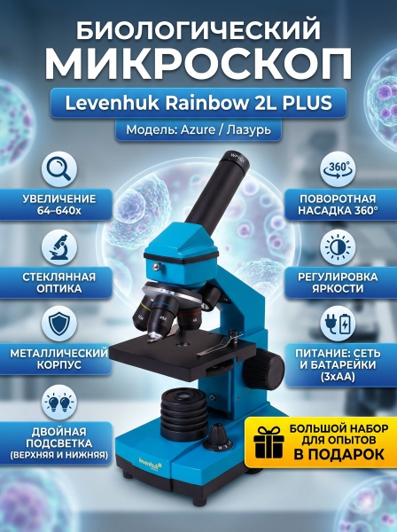 Купить оптический микроскоп Levenhuk Rainbow 2L PLUS Azure/Лазурь по эксклюзивной цене от официального дилера. Профессиональные консультации.