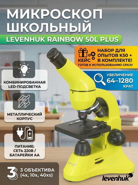 Купить оптический микроскоп Levenhuk Rainbow 50L PLUS Lime/Лайм по эксклюзивной цене от официального дилера. Профессиональные консультации.
