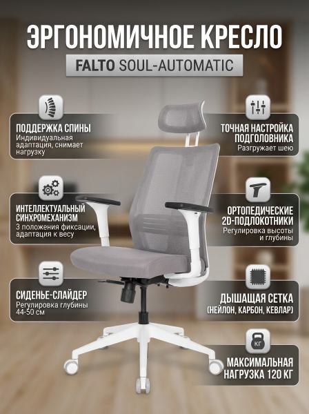 Кресло для персонала Falto Soul-Automatic, каркас белый - Преимущества