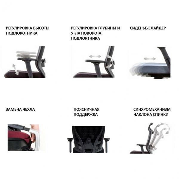 | Оптимально подходит как: | на колесах, регулируемые, с подголовником, с поясничной поддержкой, с подлокотниками, для работы в офисе |