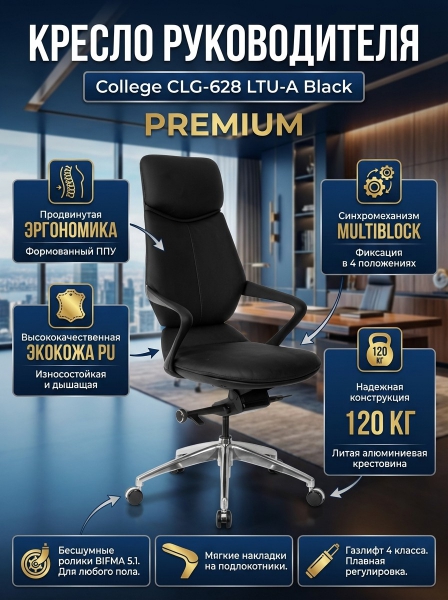 Купить Кресло для руководителя College CLG-628 LTU-A Black по эксклюзивной цене от официального дилера. Профессиональные консультации.
