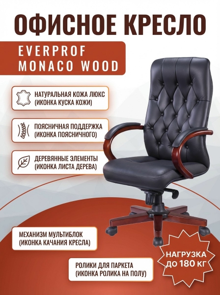 Купить Кресло для руководителя Everprof Monaco Wood кожа по эксклюзивной цене от официального дилера. Профессиональные консультации.