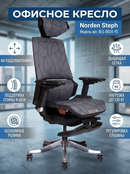 Кресло офисное Norden Steph gray, серая сетка - Бренд