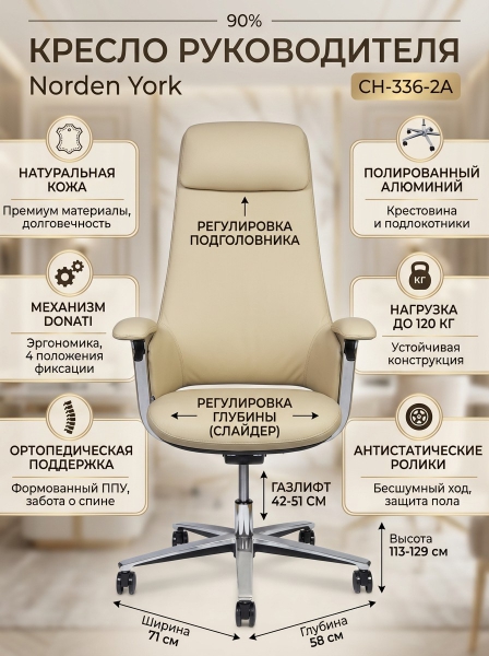 Кресло офисное Norden York, слоновая кость кожа - Описание