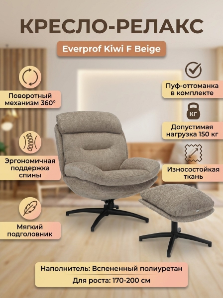 Кресло мягкое Everprof Kiwi ткань, бежевый - Бренд