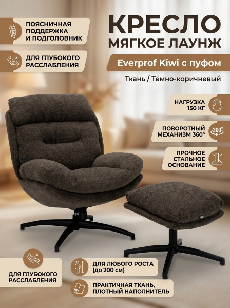 Кресло мягкое Everprof Kiwi ткань, тёмно-коричневый - Бренд