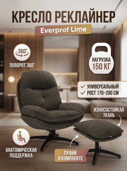 Купить Кресло-реклайнер Everprof Lime ткань, тёмно-коричневый по эксклюзивной цене от официального дилера. Профессиональные консультации.