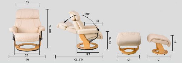 | Размеры кресла (ШхГхВ): | 89 х 91 - 135 х 74 - 107 см |