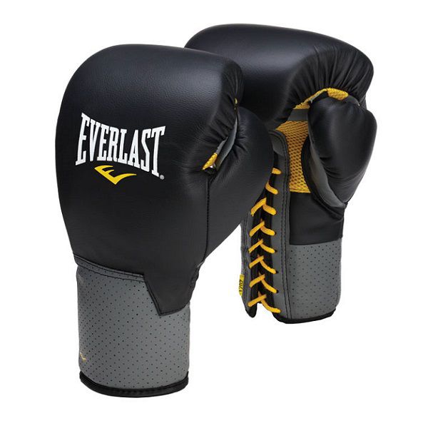 Перчатки тренировочные на шнуровке Everlast Pro Leather Laced 14oz черные - Доставка