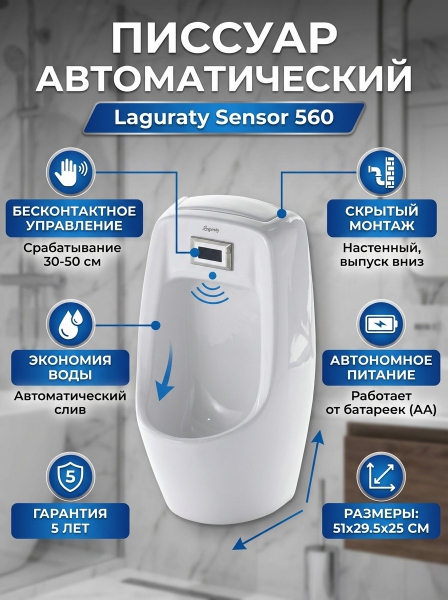 Купить писсуар Laguraty Sensor 560 (выпуск - вниз) по эксклюзивной цене от официального дилера. Профессиональные консультации.