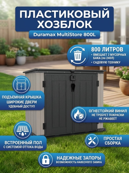 Купить пластиковый хозблок Duramax MultiStore 800L по эксклюзивной цене от официального дилера. Профессиональные консультации.