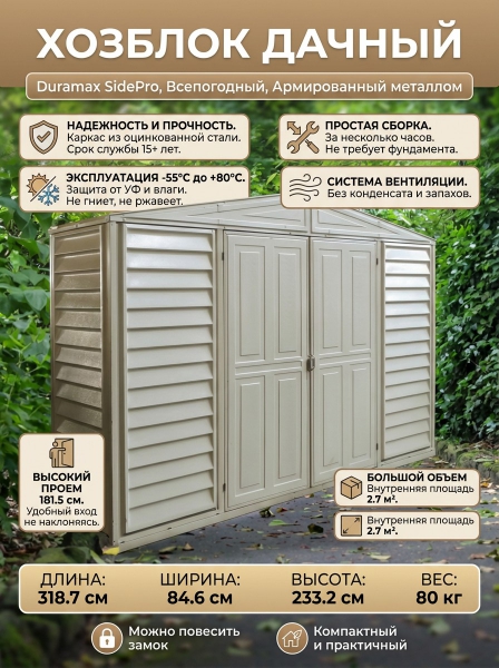 Дачный пластиковый сарай Duramax SidePro 98000-0 - Описание