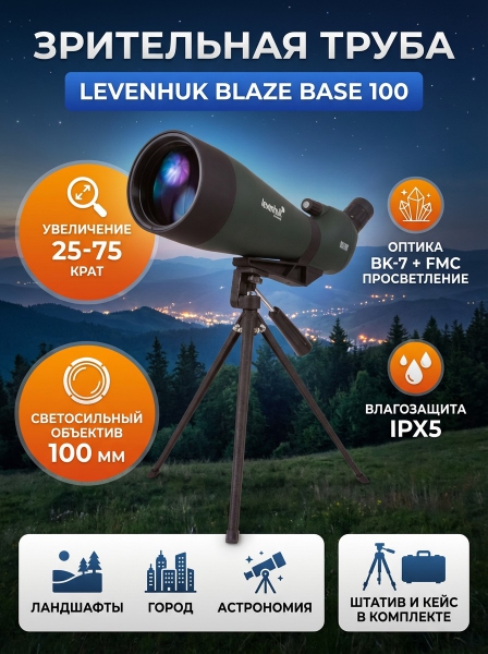 Зрительная труба Levenhuk Blaze BASE 100 - Описание
