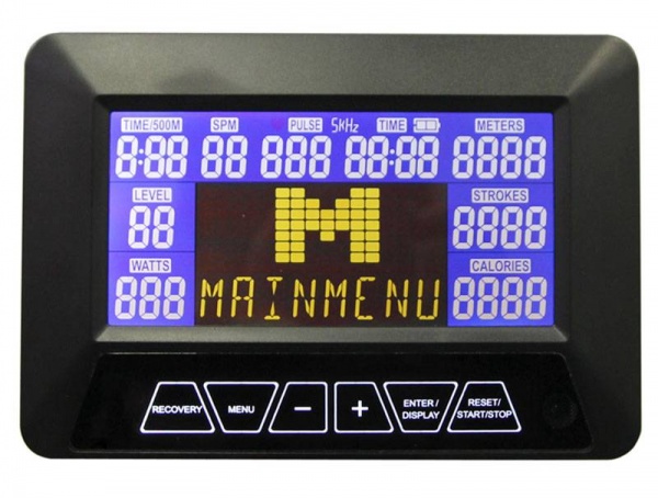 | Показания компьютера: | счет, расстояние, время тренировки, расход калорий, частота пульса, темп в Вт, количество гребков в минуту, общее количество гребков |
