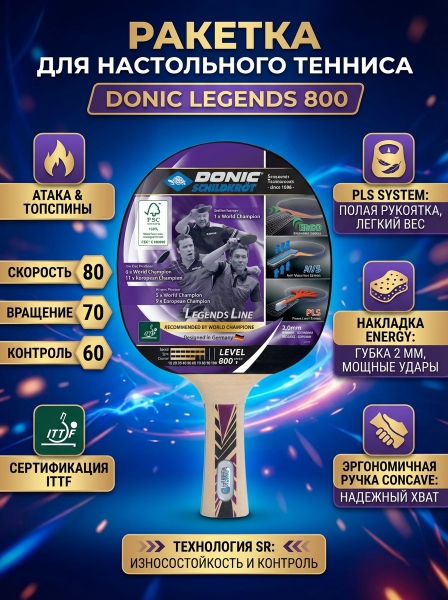 Ракетка для настольного тенниса Donic Legends 800 - Характеристики