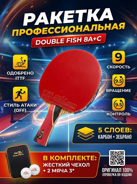 Ракетка для профессиональных игроков Double Fish 8A+C - Доставка