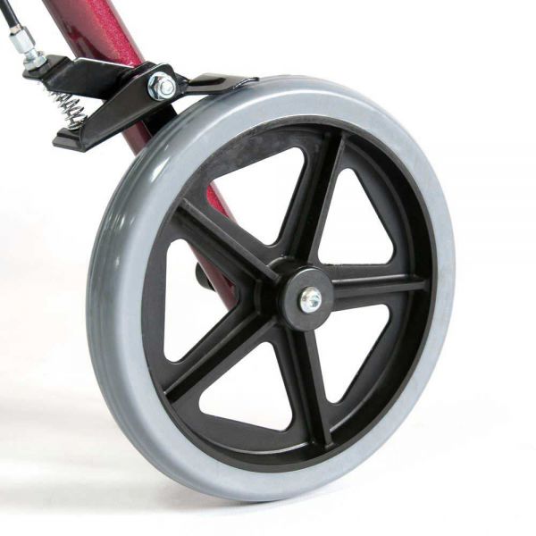 Конструкция ролятора с повышенной грузоподъемностью выполнена из алюминия с полимерным покрытием, сиденье обшито искусственной кожей. Ролятор оборудован двумя ручными тормозами задних колес c фиксирующей функцией, расположенных на ручках конструкции.
