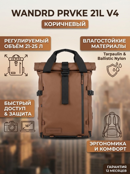 Рюкзак WANDRD PRVKE 21L (V4), коричневый, 21 л. - Описание