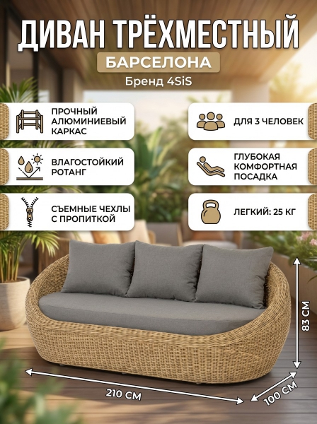 Прочитайте полный обзор, ознакомьтесь с отзывами владельцев "Барселона" трёхместный, ротанг соломенный, просмотрите описание с характеристиками и фото. 4SIS - это отличный выбор!
