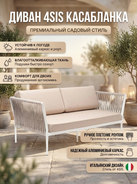 Купить диван для дачи и сада 4SIS "Касабланка" двухместный, роуп серо-коричневый 23мм, ткань бежевая 052 по эксклюзивной цене от официального дилера. Профессиональные консультации.