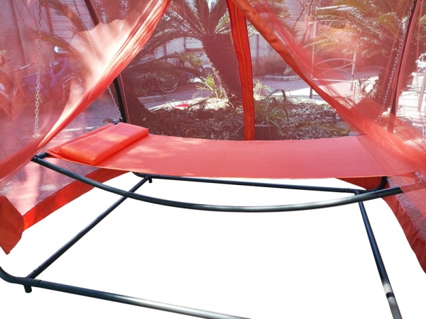| В комплект входит: | каркас, тент крыши, тент (антимоскитная сетка) на боковые стенки, подвесной гамак-качели |