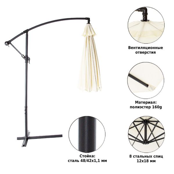 | Особенности: | дачные (для дачи), 2.6 метра, от солнца и дождя, с боковой опорой (Консольные), уличные (для улицы) |