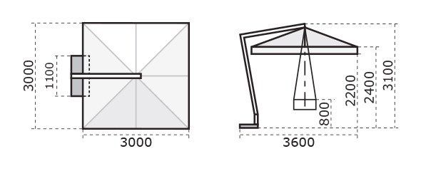 | Размер зонта (ДхШхВ): | 300 х 300 х 310 см |