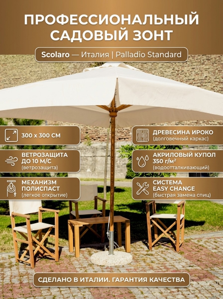 Купить садовый зонт Scolaro Palladio Standard 091/3030PASA1S по эксклюзивной цене от официального дилера. Профессиональные консультации.