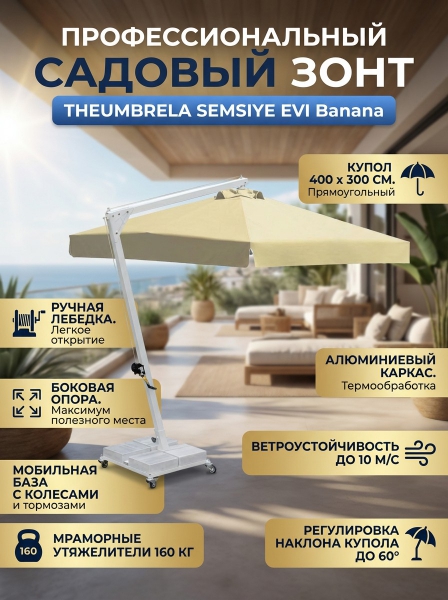 Купить садовый зонт Theumbrela Semsiye Evi Banana 80-4060-34 по эксклюзивной цене от официального дилера. Профессиональные консультации.
