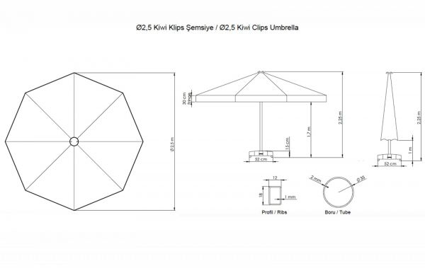 Зонт садовый профессиональный Theumbrela Semsiye Evi Kiwi Clips 50-1011-25/OLE/WH/VAL - Характеристики