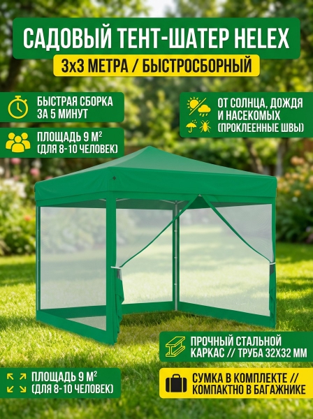 Тент садовый зеленый Helex 3x3х3м - Бренд