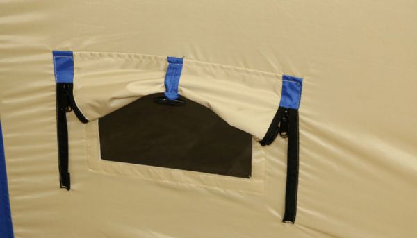 | Вентиляционные окна на стене и двери палатки для проветривания во время ночлега или дождя. | |