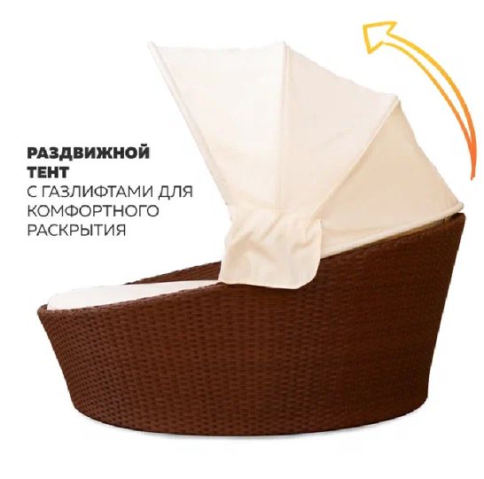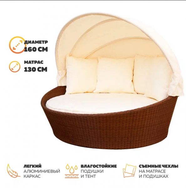 | Цвет: | искусственный ротанг - венге, подушки и тент - белый |