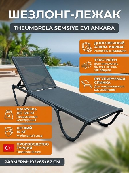 Шезлонг-лежак THEUMBRELA SEMSIYE EVI Ankara металл антрацит - Описание