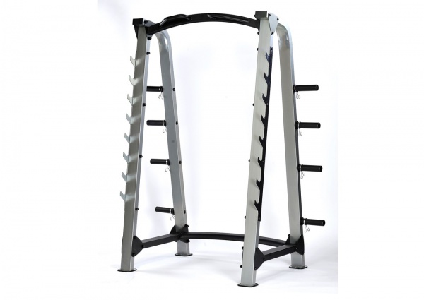 - Нагружаемые дисками – дополнительным весом в таких тренажерах выступают обычные блины, вес которых подбирается в зависимости от силовых потребностей спортсмена. В процессе выбора важно обращать внимание на качество рамы, способ фиксации дисков и грузоподъемность.