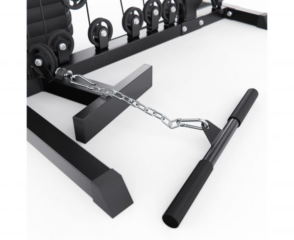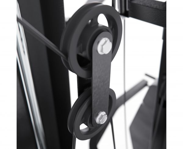 - Со встроенным весом – в них используются плоские грузы, закрепленные с помощью фиксаторов на тросах. Благодаря движению утяжелителей "вверх-вниз" отлично прорабатываются мышцы. Единственный недостаток – целенаправленная работа только с одной группой мышц.